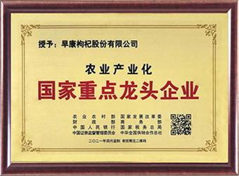 早康枸杞股份有限公司,坐落于中國(guó)枸杞之鄉(xiāng)-寧夏中寧縣,是目前國(guó)內(nèi)枸杞行業(yè)集種植、加工、銷售于一體的農(nóng)業(yè)產(chǎn)業(yè)化國(guó)家重點(diǎn)龍頭企業(yè)、國(guó)家林業(yè)重點(diǎn)龍頭企業(yè)、自治區(qū)專精特中小企業(yè),公司全面通過了IS09001:2015質(zhì)量管理體系認(rèn)證、ISO22000:2018食品安全管理體系等認(rèn)證和美國(guó)歐盟等國(guó)際國(guó)內(nèi)認(rèn)證證書,并具備中藥飲片生產(chǎn)資質(zhì)。