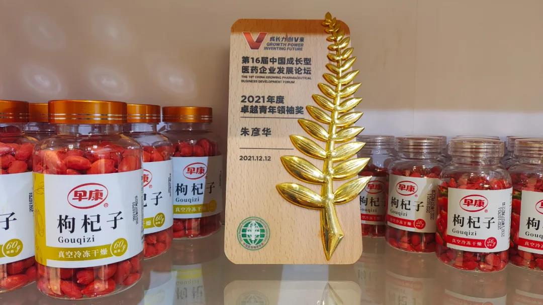 在第16屆中國成長型醫(yī)藥企業(yè)發(fā)展論壇上,早康枸杞董事長朱彥華榮獲“2021年度卓越青年領(lǐng)袖獎”,以表彰其個人在醫(yī)藥行業(yè)領(lǐng)域中的卓越貢獻。